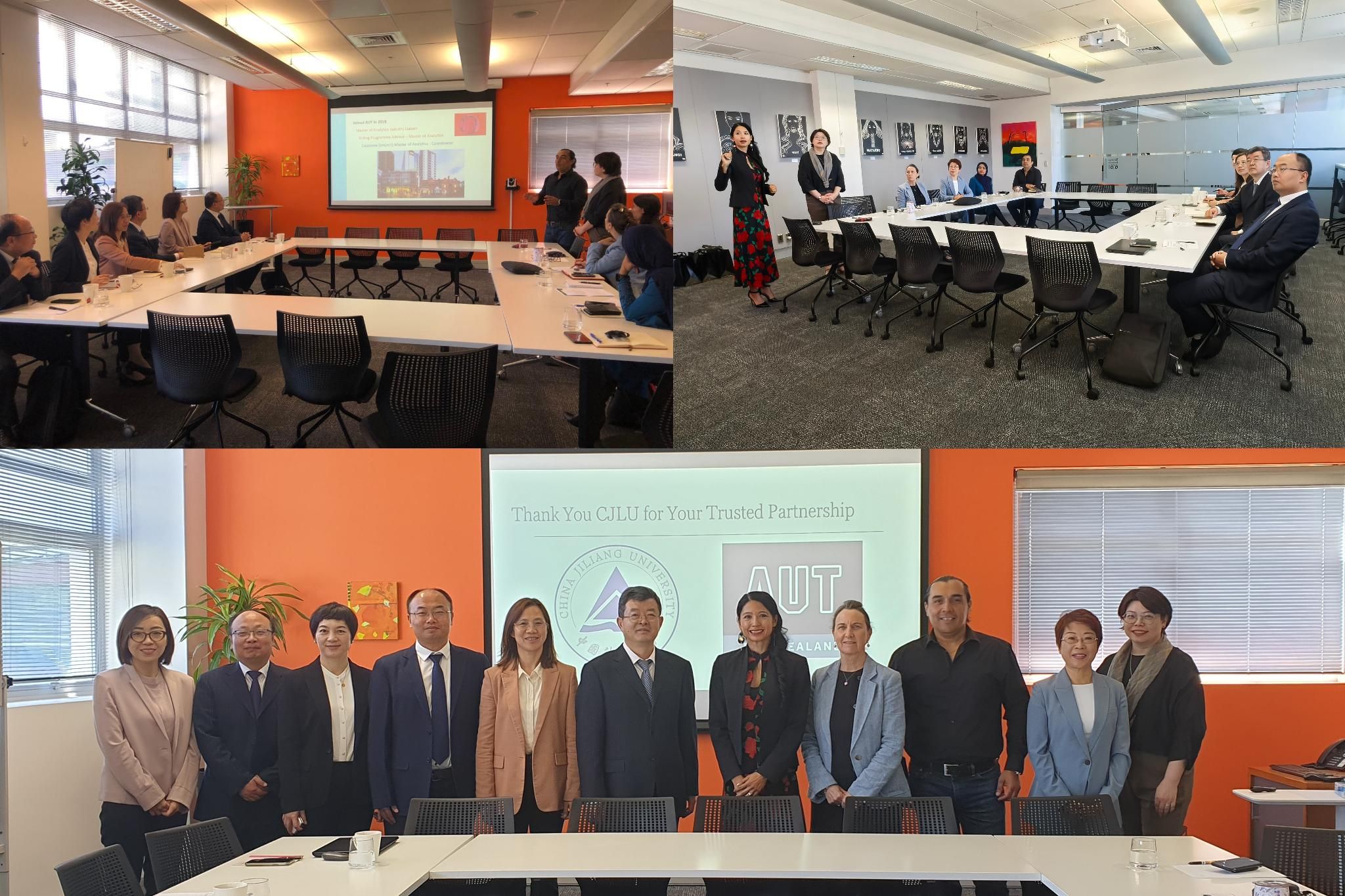 12月2日上午,代表團一行訪問奧克蘭理工大學,就進一步提高中外合作辦學計算機科學與技術專業學士學位和數據分析學碩士學位的課程教學質量,兩校在共同感興趣的領域進行合作研究的可能性以及共建非獨立法人中外合作辦學機構進行了磋商。奧克蘭理工大學設計與創意技術學部副部長Yvonne Chan Cashmore博士、國際事務部副主任Rhiannon McKenize-Smit博士、國際事務部中國事務主管Marlene Lu、數據分析學項目主管Victor Miranda博士和設計與創意技術學部教學主管Winnie Zhu參與會談。會談中,Rhiannon McKenize-Smit博士首先代表奧克蘭理工大學對代表團一行表示熱烈歡迎,她回顧了兩校十四年以來的合作成果,充分肯定了兩校建立的定期交流機制。王迪釗對雙方建立的信任合作伙伴關系表示贊賞,并期待雙方能夠在相互尊重的前提下,將兩校的合作從學生培養拓展到科學研究,推動兩校全方面深度合作。設計與創意技術學部副部長Yvonne Chan Cashmore博士介紹了近兩年計算機專業合作班的學生來奧克蘭理工大學參加夏令營活動情況,分享了學生參加奧克蘭當地企業舉辦的活動中的優異表現。數據分析學專業項目主管Victor Miranda博士介紹了該項目兩年來的運行情況,分析了項目運行的教學質量,高度肯定了項目學生的表現。隨后雙方就進一步推動兩校高質量發展、學生交流、科研合作等方面進行了深入交流和探討,并提出明年兩校共同舉辦計算機科學與技術專業合作15周年慶的設想。