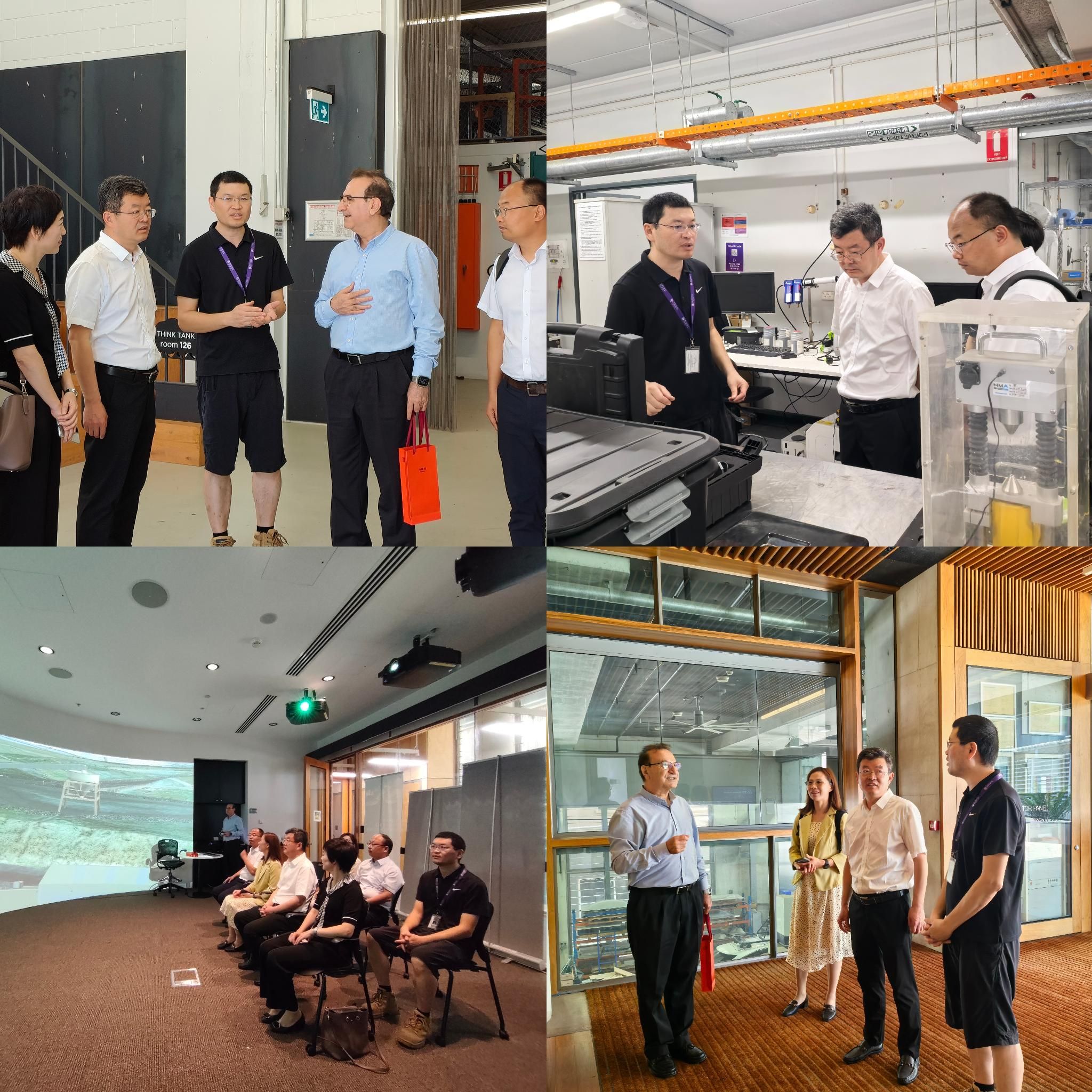 12月6日上午,代表團訪問澳大利亞昆士蘭大學。該校始建于1909年,辦學實力深厚,是澳大利亞最古老、規模最大的學府之一,2025年QS世界大學排名位列第40位;也是澳大利亞歷史最悠久的六所高等學府“砂巖學府”之一、環太平洋大學聯盟、澳大利亞八校聯盟、UNIVERSITAS21、國際鐵路聯盟及新工科教育國際聯盟等組織成員。昆士蘭大學主管國際事務的協理副校長Brett Lovegrove先生、機械和采礦工程學院Mehmet Kizil副教授、工程建筑和信息技術學院區域主管Gracie Jin女士、國際事務部主管Jessica Sun女士熱情地接待了代表團一行。雙方分別介紹了各自學校的辦學歷史、學科特色及發展情況,表達了希望在雙方共同的學科領域開展2+2本科聯合培養項目、3+2本碩聯合培養項目,尤其是在學生創新創業教育方面,雙方均表示愿意加強交流與合作。會談結束后,代表團在Mehmet Kizil 副教授的陪同下參觀了工程創新中心和機械工程系大樓,詳細了解了工程創新中心的運行模式,系統調研了機械工程大樓的綠色環保節能的設計理念,體驗了昆士蘭大學虛擬仿真教學和工程學院設計的太陽能休息座椅。隨后,代表團在Jimmy Li博士的陪同下參觀了巖石力學專業實驗室,深入交流了巖心采樣、力學性能測試等實驗技術和平臺,代表團還針對實驗室安全管理和校園應急處置平臺建設情況進行了交流與探討。