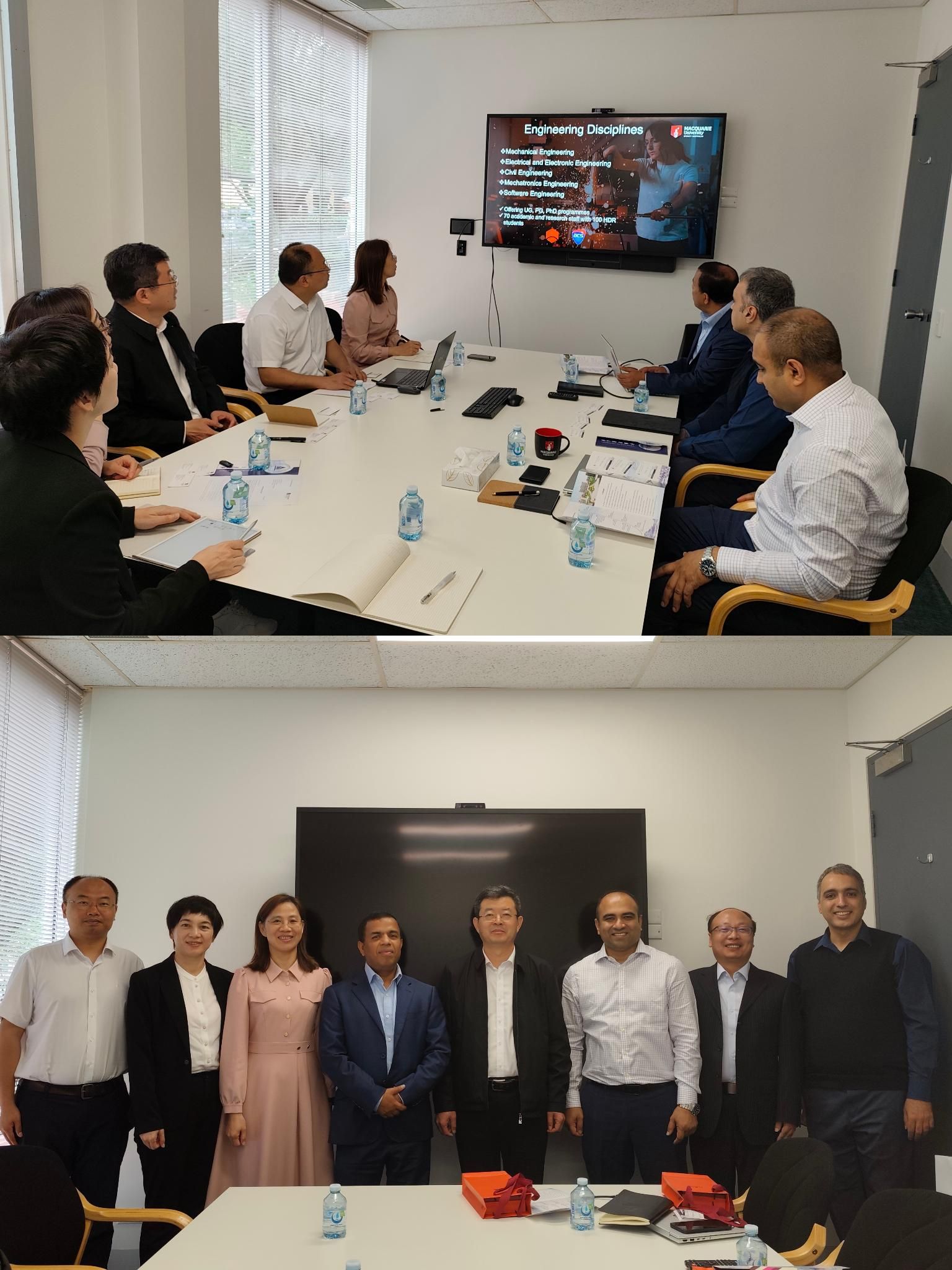 代表團一行與麥考瑞大學工程學院院長Aman Oo、科研主管Rouzbeh Abbassi博士、教學主管Nazmul Huda博士進行了會談。會談中,Aman Oo詳細介紹了麥考瑞大學工程學院的學科和專業設置情況,重點介紹該校通過項目化學習、實習實踐以及企業合作等方式,從第一天開始培養工程師的人才培養理念,列舉了在能源與碳減排、先進材料與制造、健康技術、建筑與基礎設施、未來通信與物聯網、微電子與光學等領域的技術優勢。副校長王迪釗表示十分期望與麥考瑞大學建立校際合作關系,推動雙方在學生短期交流項目、碩士和博士層次聯合培養、低碳能源和安全風險領域科研合作等方面的合作與交流。雙方一致同意通過此次會談加緊推動兩校合作諒解備忘錄的簽署以及聯合培養博士生等方面的協議內容。會談結束后,代表團一行參觀了麥考瑞大學校園和專業實驗室。