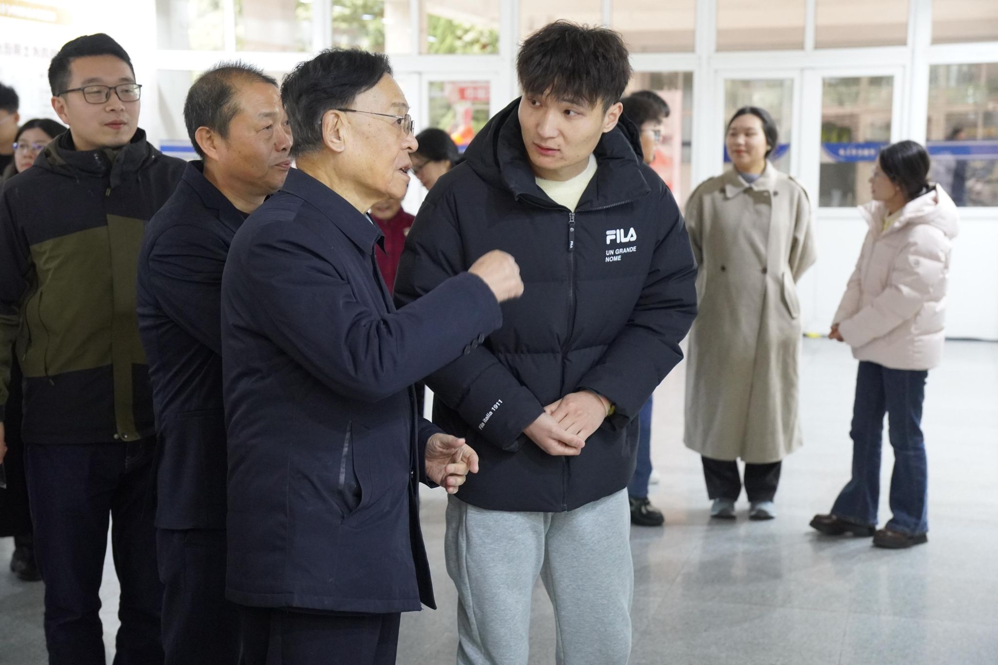 在參觀學院人才之家時,莊院士仔細了解學院人才引進和培育情況,關注學院高層次人才和青年教師的工作進展與成果。他與學院浙江省高校黃大年式教師團隊深入交談,勉勵老師們要堅守“計量”底色,擦亮“光電”特色,主動對接和服務國家戰略需求,鉚足干勁為學科建設和科研攻關貢獻智慧和力量。