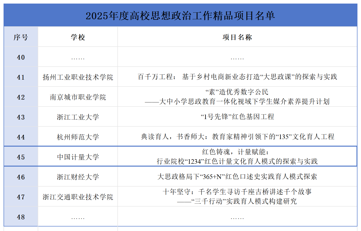 此前,我校共有5個項目分別入選2025年度浙江省高校思想政治工作精品項目、高校場館育人作用開發(fā)、高校學生心理健康教育指導典型案例、新時代偉大變革融入高校思想政治教育典型案例和高校網(wǎng)絡教育名師等類別。