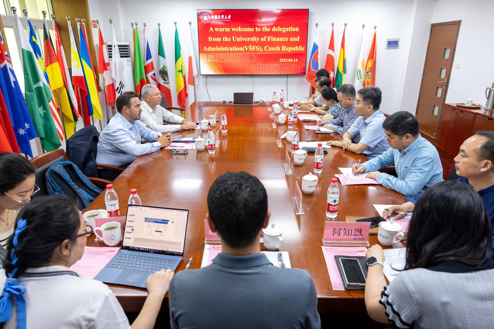 5月14日,捷克布拉格金融管理大學(University of Finance and Administration, V?FS)董事會副主席Emil ?enky?和副校長Petr Budinsky來校訪問。副校長王斌銳在明德樓A216會議室熱情接待來賓并主持座談會,國際處、國際學院、信息學院、經管學院、人外學院、藝傳學院相關負責人參加座談會。