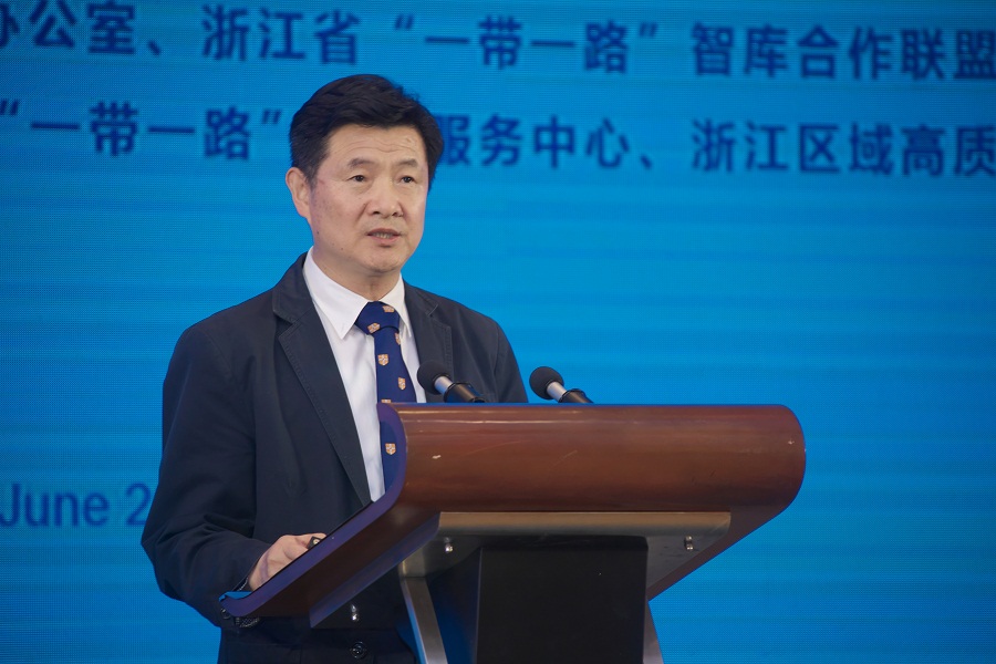 6月8日,浙江省推進“一帶一路”建設大會和浙江省“一帶一路”智庫論壇在寧波舉行。省委副書記、省長袁家軍主持,省委書記車俊出席會議并發表重要講話。來自印度尼西亞、立陶宛、盧森堡、土庫曼斯坦、斯洛伐克、肯尼亞、約旦、泰國、阿曼、捷克等60余個國家和地區的140多位外賓,200余名中外企業家代表出席大會。校長宋明順應邀出席會議并在浙江省“一帶一路”智庫論壇上,以“發揮優勢產業標準作用 共筑‘一帶一路’互聯互通”為題作了精彩的學術報告。論壇由浙江省發展規劃研究院黨組書記、院長周華富主持。