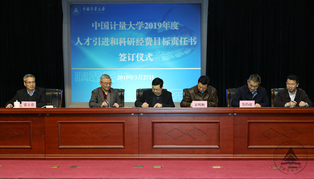 3月28日,我校舉行2019年人才引進和科研經費目標責任書簽訂儀式。校黨委書記張土喬、校長宋明順、黨委副書記程剛和全體中層干部參加了簽訂儀式。