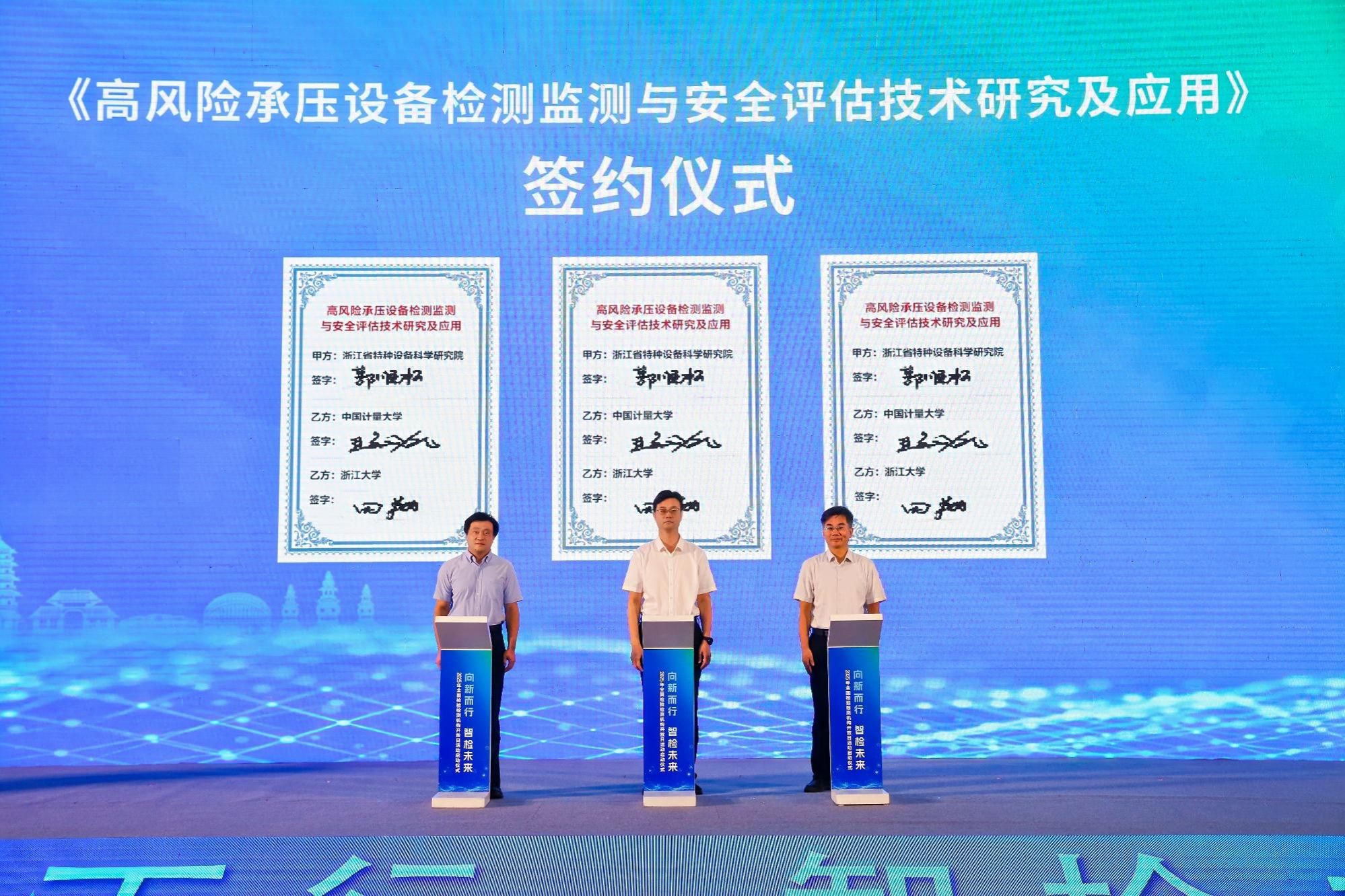 王斌銳代表學校與浙江省特種設備科學研究院、浙江大學共同簽署《高風險承壓設備檢測監測與安全評估技術研究及應用合作協議》。該項目聚焦特種設備安全領域的關鍵技術攻關與工程應用,通過多方協同創新,提升高風險設備的安全監測與評估能力,為推動行業技術進步和公共安全保障提供有力支撐。