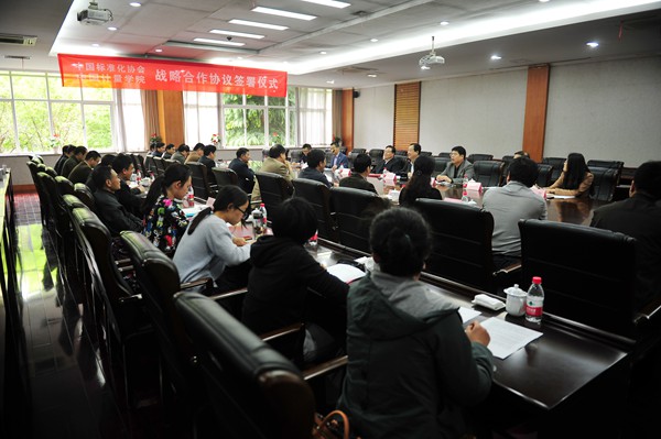 4月24日上午,中國標準化協會與我校戰略合作協議簽署儀式暨戰略合作領導小組首次會議在我校聞廳一樓會議室舉行。雙方就建立戰略合作機制,共同開展標準化協同創新研究、人才培養與培訓、社會服務與合作交流等內容簽署戰略合作協議,并圍繞2015年度重點合作內容交換意見。