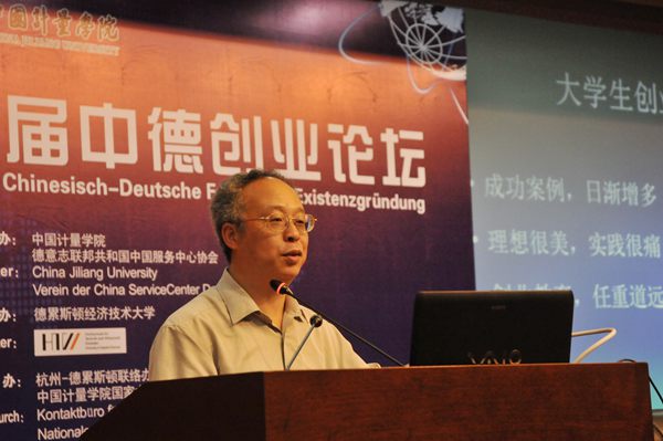 7月1日上午,“首屆中德創業論壇”在我校舉行。來自中德兩國的教育學家、創業導師等,與我校的200余位師生面對面交流,共同分享創新創業實踐經驗。本次論壇由我校和德國中國服務中心協會主辦。浙江省教育廳副廳長朱鑫杰、全國高校畢業生就業協會副理事長王熾昌、德意志聯邦共和國中國服務中心協會主席姚豫杰、校長林建忠教授、德累斯頓工業大學特雷夫·考賀漢教授、德累斯頓經濟技術大學的迪雅克·日邂爾特教授、中國大學生創業導師陳愛國等出席論壇。會議由校黨委副書記陶偉華主持。