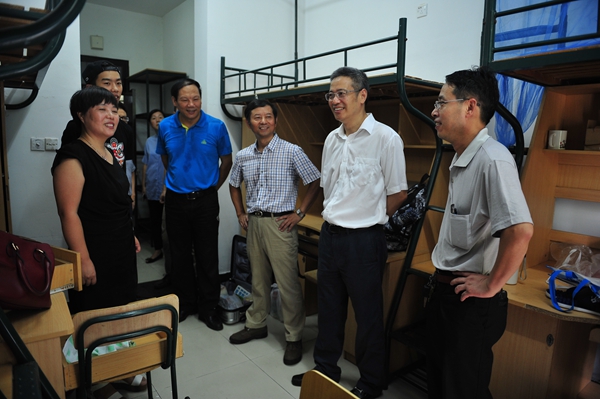 9月5日上午,黨委書記張土喬,校長林建忠,黨委副書記陶偉華,副校長宋明順、范慶瑜在相關(guān)部門負(fù)責(zé)人的陪同下來到迎新一線,親切看望前來報到的新生和家長,慰問參加迎新的工作人員和學(xué)生志愿者。