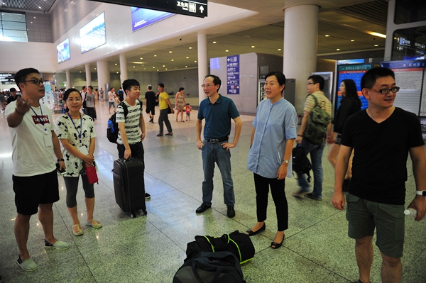 在東西校區(qū)的迎新大廳,校領(lǐng)導(dǎo)深入了解各二級學(xué)院、各部門迎新工作進展情況。每到一處,校領(lǐng)導(dǎo)都與迎新人員親切交談,詳細詢問新生報到情況、迎新準(zhǔn)備及校園后勤保障服務(wù)等情況,叮囑全體工作人員要熱情主動、認(rèn)真細致地為新生和家長提供優(yōu)質(zhì)、高效的服務(wù),保障迎新工作順利開展。副校長范慶瑜還來到杭州火車東站,慰問堅守在接站崗位上的后勤員工和青年志愿者們,并向遠道而來的新生及其家長帶去了學(xué)校的關(guān)心和問候。