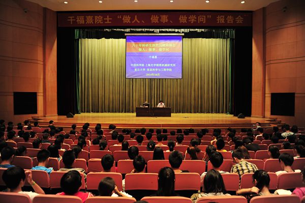 關(guān)于學(xué)習(xí),干院士望著臺(tái)下的求知者,十分嚴(yán)肅地給出了自己的觀點(diǎn)。首先,要學(xué)好外語(yǔ),用好這個(gè)工具對(duì)論文的發(fā)表和知識(shí)的寬廣度都有十分重要的意義。干院士回憶起自己去蘇聯(lián)學(xué)習(xí)的經(jīng)歷,當(dāng)時(shí)他僅僅用了三年時(shí)間,就能用俄語(yǔ)寫論文,很快贏得了大家的尊敬。其次,要具有創(chuàng)新精神,不做重復(fù)性的工作,做學(xué)問(wèn)要踏實(shí)、有目的,善于利用身邊的資源,善于把握機(jī)會(huì)。干院士表示,他喜歡年輕人學(xué)習(xí)的氛圍,做學(xué)問(wèn)就應(yīng)該這樣,充滿活力和朝氣才能有新的思想成果。