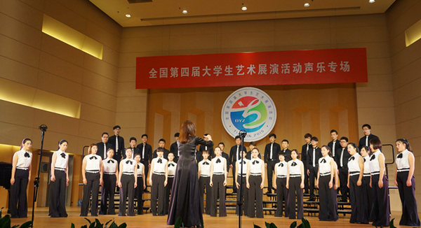 據悉,全國大學生藝術展演是教育部舉辦的全國性大學生藝術比賽,每3年舉辦一屆,是國內目前規格最高、規模最大、影響最廣的大學生藝術盛會。本屆展演活動以“我的中國夢”為主題,國內高校參與覆蓋面超過90%。現場展演期間,來自國內32個省(市、自治區)的參演學生、帶隊老師以及各地代表隊成員6000多人,在聲樂、器樂、舞蹈和戲劇4項藝術表演比賽以及美術作品展覽、青春大舞臺、大學校長美育論壇等各項活動中,展示青年學子高尚的人生追求、高雅的審美情趣、優秀的藝術才華和勇于創新的能力。其中聲樂類參演作品共計186項,評選出一等獎共計26項。