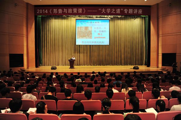 “大學是什么?”、“到大學學什么?”圍繞這兩個問題,林校長以“大學之道”為題,為新生們的大學之路指點迷津。為了照顧到不同專業學生的上課時間,林校長先后作了五場講座,新生們可以挑選自己方便的時間前來聽講。現場,同學們翹首以盼,座無虛席,甚至有同學坐到了樓道的臺階上。