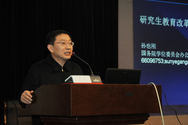 孫也剛主任為與會者做了題為“研究生教育改革的理念、思路和措施”的專題報告,為我校研究生教育、學位點的設置以及學科建設等方面提供了具體的指導意見。郜正榮處長在講話中充分肯定了我校學科建設所取得的顯著成效,并就如何做好學科建設工作在強化意識、對標管理、接地氣、注重特色、隊伍建設等5個方面進行了說明和闡述。