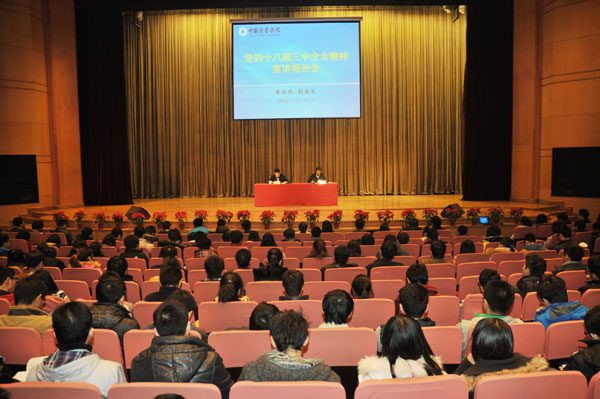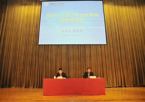 12月11日下午,浙江省副省長朱從玖來我校作黨的十八屆三中全會精神宣講報告。學校領導班子成員、全體中層干部、全體思政理論課教師、全體輔導員,部分學生黨員約1200人參加了報告會。報告會由校黨委書記胡建成主持。