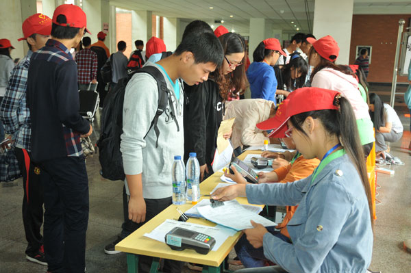 按照《中國計量學院2013年迎新工作方案》的部署,全校各職能部門和院系接待站的工作人員各司其職、秩序井然,全力營造一個和諧溫暖的氛圍。此次迎新的總體工作時間為9月6日13:00至9月7日24:00。由后勤服務公司總負責接站接送;由學生處牽頭負責,研究生部、各二級學院和有關部門設立報到點,聯合辦理報到入學手續;由宣傳部、后勤服務公司、后產處、基建處等單位分頭負責,承擔迎新校園布置、宣傳報道和新生入住等工作;由學校辦公室牽頭負責開學典禮的各項準備工作。