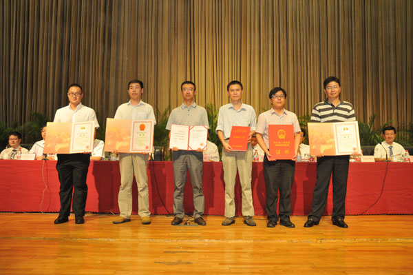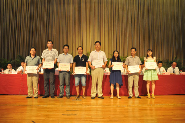 大會先后對我校獲得2012-2013年國家、省部級及廳局級獎勵與榮譽稱號的個人和集體,以及獲得2012-2013年校級獎勵的個人和集體進行了表彰。國家技術發明二等獎獲得者代表、光學與電子科技學院張在宣教授從黨委書記胡建成手中接過了獎狀。獲得教育部高等學校科學研究優秀成果獎、省科學進步獎、省“杰出青年”、省高校優秀教師、省五一巾幗標兵、省優秀講師團、省巾幗文明崗等榮譽稱號的110名優秀教師代表上臺接受表彰。黨委副書記徐涌金主持會議。黨委副書記陶偉華,副校長俞曉平、宋明順宣讀了表彰文件。