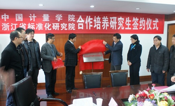 簽約儀式上,研究生部陳樂主任介紹了我校研究生教育和本次合作的情況,浙江省標準化研究院陳自力院長介紹了與我校的前期科研與人才培養合作,陳樂主任和陳自力院長代表雙方簽訂了“中國計量學院-浙江省標準化研究院合作培養碩士研究生協議書”和“浙江省標準化研究院-中國計量學院全日制專業學位研究生專業實踐協議書”。楊燁副局長和俞曉平副校長分別發表了講話,希望把合作落到實處,為地方經濟和社會發展做出貢獻。最后,楊燁副局長和俞曉平副校長共同為中國計量學院-浙江省標準化研究院研究生合作培養與實踐基地揭牌。