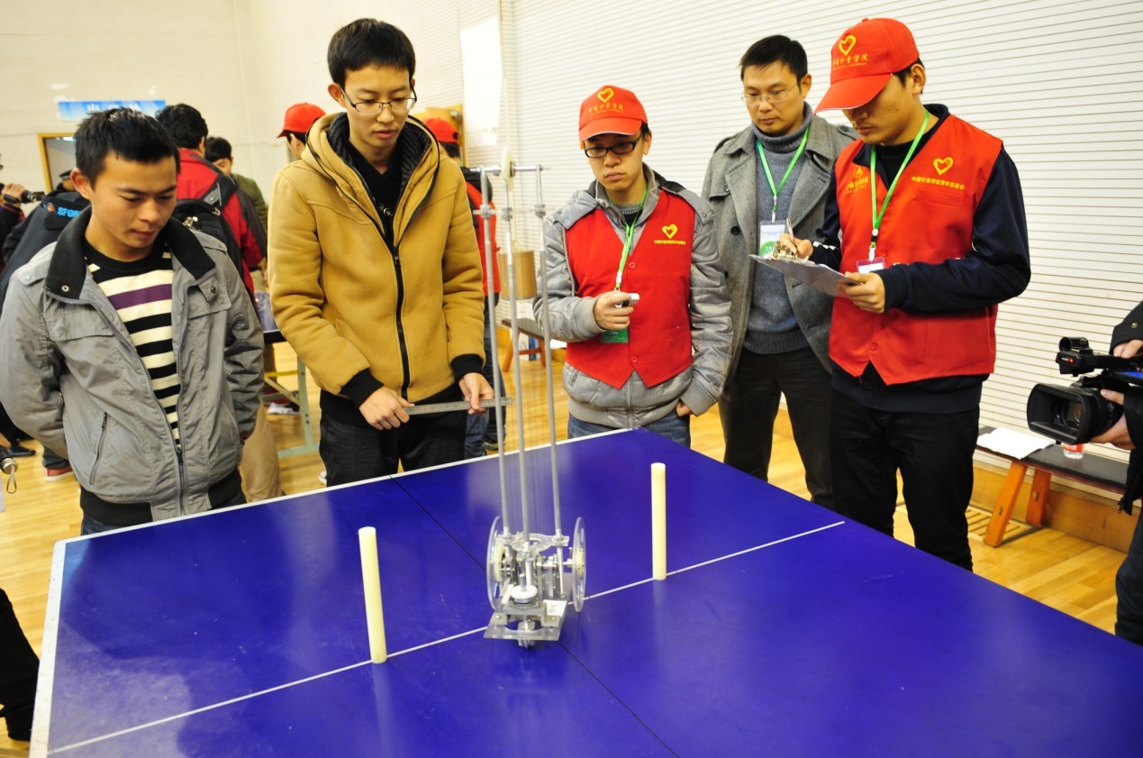 “無碳小車”的賽場競技,充分體現了“創新設計能力、制造工藝能力、實際操作能力、工程管理能力”四方面的要求,各參賽隊伍研制以重力勢能驅動的具有方向控制的自行小車,依靠懸掛在頂部的重物將重力勢能轉化為小車的動能,經過角度的調節,使小車能繞過障礙物,走出S弧線或8弧線。選手們紛紛亮出精心設計制作的作品,細心調試,認真操作,力求發揮出最佳水平。在激烈的角逐中,由我校工程訓練中心教師指導的八支參賽隊伍的“無碳小車”繞障多、行走遠,在各參賽隊伍中遙遙領先,獲得多項第一,為學校贏得了榮譽。