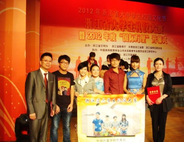 作為2012年浙江省大中學生校園文化節的重要活動,中國計量學院、浙江工業大學、溫州大學、浙江萬里學院、浙江水利水電專科學校、寧波大紅鷹學院等20所學校參加了這次比賽,從今年5月開始經初賽、復賽,最后產生10強進入決賽。在領隊人文社科學院陳清清老師的帶領下,由10公關1班羅禮、10公管1班陳雲梅、11公管1班趙婧雯、11公管1班杜浩杰組成的參賽隊伍敢于拼搏、表現不俗,最終獲得一等獎成績。比賽由知識問答、自我介紹、才藝表演、情景演示四個部分組成,在禮儀情景演示環節,10所高校的參賽隊運用小品等表演方式,展示了職場禮儀、服務禮儀、宴請禮儀、婚禮禮儀、航空禮儀、宮廷禮儀等內容,生動地表達了選手們對文明的理解、對禮儀的詮釋、對生活的熱愛。