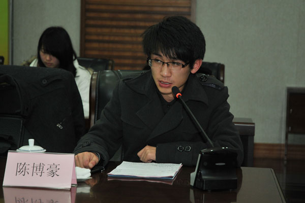 曾在去年熱心幫助中風(fēng)老人的我校現(xiàn)代科技學(xué)院大三學(xué)生陳博豪是座談會(huì)上唯一的一名大學(xué)生代表。“學(xué)雷鋒不能‘臨時(shí)抱佛腳’,也不能‘三月里來四月走’,我們應(yīng)該在學(xué)雷鋒活動(dòng)中,重新定義快樂、幸福、正義的涵義。金錢不一定能帶來幸福,真正能使人幸福的是德行。修身養(yǎng)性,做好自己,挺立起內(nèi)心的風(fēng)骨,以真誠(chéng)待人,才是最樸素的起點(diǎn)。”他誠(chéng)摯的發(fā)言獲得了全場(chǎng)的掌聲。