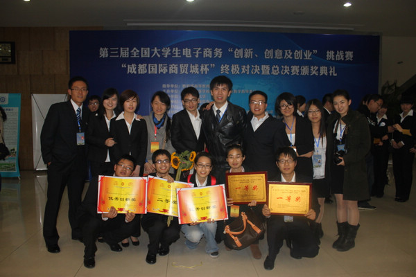 11月26日,第三屆全國(guó)大學(xué)生電子商務(wù)“創(chuàng)新、創(chuàng)意及創(chuàng)業(yè)”挑戰(zhàn)賽在西南財(cái)經(jīng)大學(xué)舉行,我校三支代表隊(duì)榮獲一等獎(jiǎng)2項(xiàng)、二等獎(jiǎng)1項(xiàng)以及最佳創(chuàng)新獎(jiǎng)2項(xiàng)的佳績(jī),取得了在該項(xiàng)賽事上新的突破。