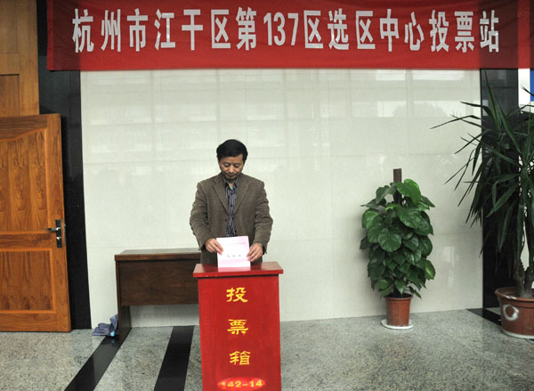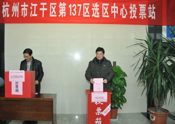 137選區設中心投票站1個,分區投票站6個(其中3個為浙江經濟職業技術學院分區投票站)。下午4:00整,投票選舉結果揭曉。137選區應到選民10776名,參加投票的選民10476名。李青同志獲得有效票8561張,獲得參加選舉的過半數的選票,按照《選舉法》第四十一條規定及江干區選舉委員會審核批準,我校李青同志當選為杭州市江干區第十四屆人民代表大會代表。