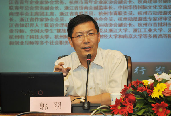 根據團省委“與祖國共奮進,與浙江同發展”形勢政策教育的統一部署,5月11日下午,全國“挑戰杯”大學生創業計劃競賽資深專家、評委,杭州天暢網絡科技有限公司董事長兼總裁郭羽先生應邀來到嘉量講壇,為我校師生做了題為“大學生創業與‘挑戰杯’創業計劃競賽”專題講座,為正在積極備戰2011年浙江省第十二屆“挑戰杯”大學生課外學術科技作品競賽的師生指點迷津。