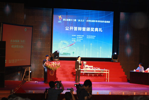 5月26日至28日,由共青團(tuán)浙江省委、浙江省教育廳、浙江省科學(xué)技術(shù)協(xié)會、浙江省學(xué)生聯(lián)合會共同主辦的浙江省第十二屆“挑戰(zhàn)杯”大學(xué)生課外學(xué)術(shù)科技作品競賽決賽在浙江工商大學(xué)隆重舉行,本次競賽的口號是“心隨創(chuàng)意不止,行迎挑戰(zhàn)無界”,來自全省40多所高校的作品參加了決賽。在全體隊員、指導(dǎo)老師和二級學(xué)院的共同努力下,我校學(xué)生表現(xiàn)優(yōu)異,共榮獲23項省級獎項,其中特等獎2項,一等獎3項,二等獎11項,三等獎7項的好成績,這是我校參加省“挑戰(zhàn)杯”大學(xué)生課外學(xué)術(shù)科技作品競賽以來,獲獎數(shù)量最多,獲獎等級最高的一次。同時,學(xué)校還獲得了本屆“挑戰(zhàn)杯”競賽的“優(yōu)秀組織獎”。