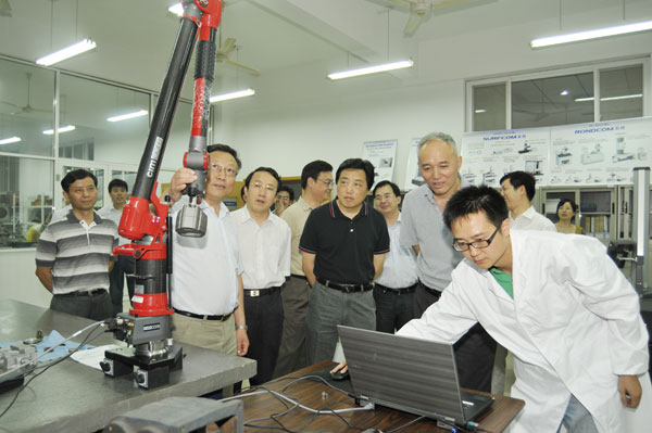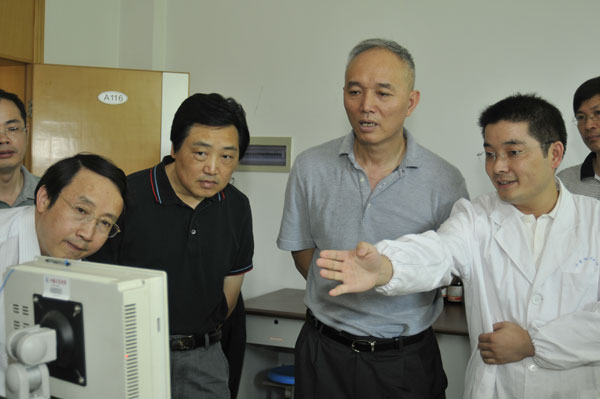 蔡奇部長一行在學校黨政領導班子的陪同下還考察了我校國家磁性材料及其制品質量監督檢驗中心、浙江省“重中之重”學科實驗室和生物計量及檢驗檢疫技術實驗室。他仔細聽取了相關儀器設備的介紹,指出產學研相結合這條路很好,一定要堅持走下去。檢測工作非常重要,質量問題、食品安全問題是人民群眾最關心的問題,學校的實驗室可以建成開放式的,提供公共檢測平臺,使高校的先進設備和人才優勢更好地轉化成生產力,更好地為經濟社會發展服務。