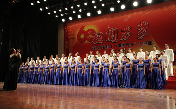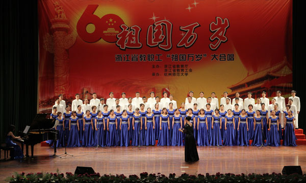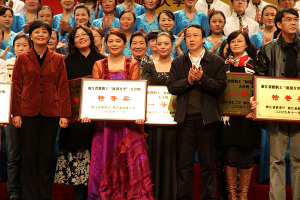 11月28日,由浙江省教育廳、浙江省教育工會(huì)主辦、杭州師范大學(xué)承辦的浙江省教職工“祖國(guó)萬(wàn)歲”歌詠大會(huì),在杭州師范大學(xué)下沙校區(qū)藝術(shù)中心劇場(chǎng)隆重舉行。經(jīng)過(guò)初選和復(fù)賽,我校合唱團(tuán)與其它12支合唱隊(duì)一起進(jìn)入了歌詠大會(huì)第二階段的決賽,并在本次大合唱中榮獲一等獎(jiǎng)。