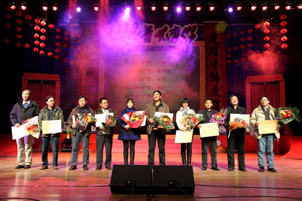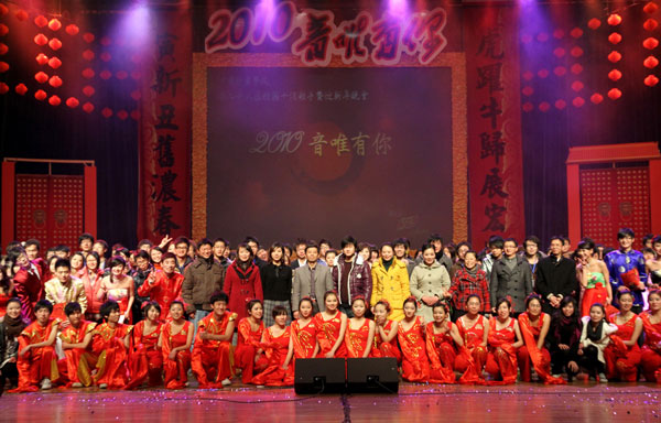 手捧榮譽證書和鮮花的10位老師瞬間成為了晚會的焦點。在2009年的最后一天,接受學生給予的榮譽和祝福,老師們感到特別幸福。獲獎的每一位老師都是由全校學生自己評選產生的。他們中有連續兩年被學生選中最喜歡老師的龍之一、李驚濤,也有執教年頭并不長的青年教師趙士龍、肖丹。“能夠和我們最喜歡的老師一起跨年,覺得很幸福。我祝福每一位老師都能身體健康、工作順利,桃李滿天下!”07級英語專業的沈琳清說。