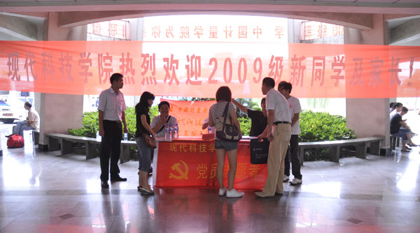 如果說頭戴小紅帽的青年志愿者是校園中一道獨特的風景線。那么,在新迎隊伍中,一支由現代科技學院學生黨員組成的“黨員之家”服務隊也格外引人注目。無論是在報到現場,還是東區生活區內都有他們忙碌的身影。他們與志愿者一樣,幫助新生完成報到手續,陪同新生入住公寓,用心維持現場秩序,耐心接受新生和家長咨詢,還主動、熱情地向新生描述起大學的生活和提醒他們在平時的學習生活中應該注意的相關事項。“我們是服務員、講解員、搬運員、協調員……但我們擁有同一個名字——共產黨員。”一位不愿透露姓名的學生黨員說。
