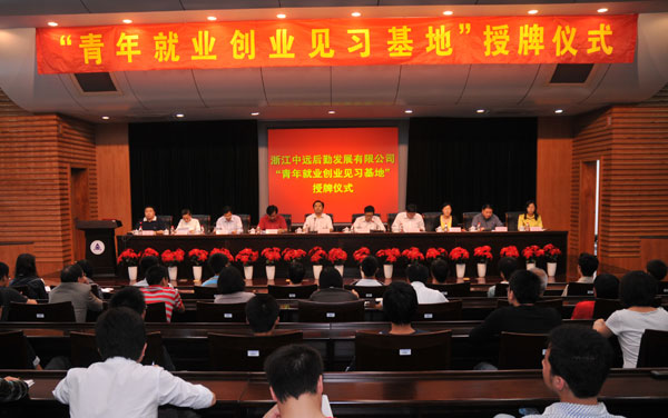 “青年就業創業見習基地”是共青團組織為推動青年特別是大學生就業而設立的見習平臺。經批準,浙江中遠后勤發展有限公司被授予團市委第二批“青年就業創業見習基地”,這也是我省高校首家“青年就業創業見習基地”。儀式上,團省委副書記蔡記波和副校長馮時林共同為浙江中遠后勤發展有限公司授“青年就業創業見習基地”牌,公司總經理郭志德接牌。