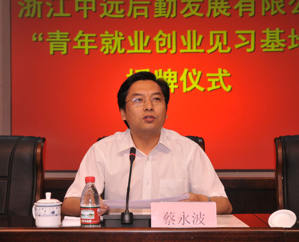 蔡永波在講話中深刻闡述了在今年我省大學生就業面臨嚴峻形勢的背景下,建立“青年就業創業見習基地”的深刻意義。他指出,該制度的實施不僅為大學生就業創業提供了更多的機會,幫助青年學生積累工作經驗,增強就業競爭力,也為企業制度化選人、用人提供了便利。浙江中遠后勤發展有限公司設立“青年就業創業見習基地”是一件服務學生迫切需求、服務學校后勤發展、服務校園學生自主化管理、服務社會和諧穩定的大好事、大實事。他希望,浙江中遠后勤發展有限公司能認真做好見習崗位與學生的對接,大力加強見習基地的管理和建設,切實幫助學生提高綜合素質與職業能力,樹立科學理性就業觀念,把好事做好,實事做實。
