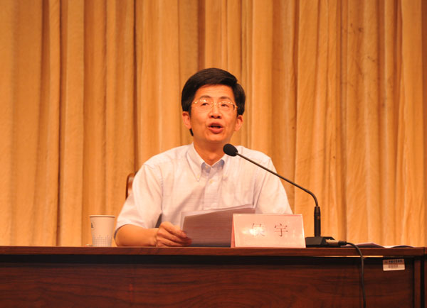 侯宇副校長在會上講話。他代表學校對在學科競賽和科技創新中取得優秀成績的同學、國家獎學金和國家專利獲得者表示祝賀,對為同學們的創新實踐能力培養付出了辛勤努力和無私奉獻的老師們,用優秀的成績為學校贏得了榮譽、提升了學校的社會影響的同學們以及支持學生成才成長的所有人表示感謝!侯宇指出,我校學生在挑戰杯、機械設計、數學建模、航模比賽等各類學科競賽和科技創新上取得了國家和省級獎286項,成績非常出色,但是高水平的科技創新成果不夠豐富、高級別的學科競賽獎項偏少,學生科技創新的能力和水平還需要進一步提高。針對我校大學生科技創新活動,侯宇提出了四點要求:一是要求全員重視學生創新實踐能力培養,形成齊抓共管的科技創新活動氛圍;二是要求完善激勵政策和保障機制,推動大學生科技創新活動的深入開展;三是要求實施品牌化建設,提高大學生科技創新活動的層次和水平;四是要求全校大學生都要積極投身科技創新活動。他希望獲獎同學們把自己成功的經驗傳授給今年即將參賽的同學,帶動學弟學妹們在教師指導下,刻苦鉆研、勇于實踐,爭取更大的成績。也希望大家在新的起點上,進一步增強責任感,明確目標,振奮精神,扎實工作,刻苦鉆研,為我校大學生科技創新活動再譜新篇章。