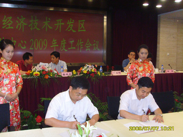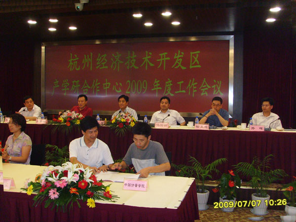 7月7日上午,杭州經濟技術開發區產學研合作中心2009年工作會議在下沙城建文化廣場召開。俞曉平副校長、蔣慶副教授、科技創業園總經理張淑琴、科技處黃海清參加了本次會議。