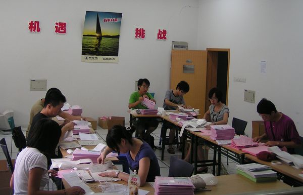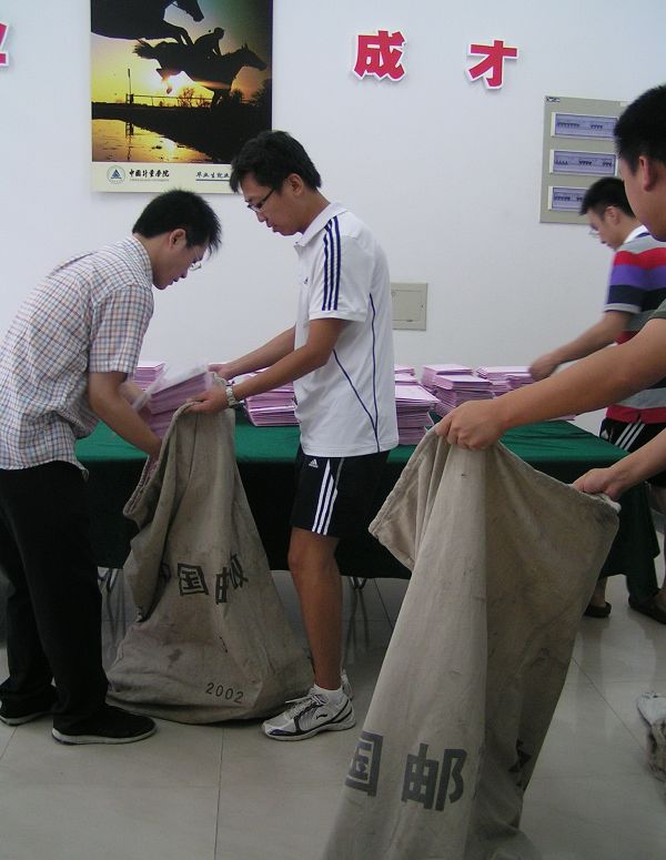 每個省份、每一批次錄取結束后,學校都要及時公布錄取結果、寄送錄取通知書,并隨通知書寄送《高等學校學生資助政策簡介》,保證把國家的助學政策宣傳到每位新生。現場忙碌而又井然有序。這樣的場景在我校及獨立學院浙江省第二批錄取了3000多名考生后,就可以用“壯觀”來形容了。