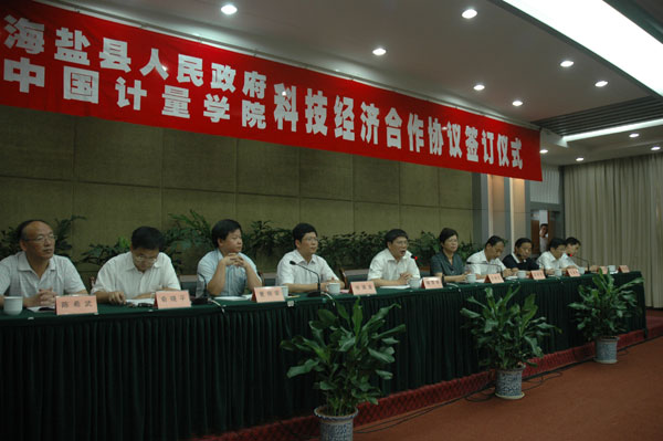 8月11日上午,中國計量學院與海鹽縣人民政府在海鹽正式簽訂科技經濟合作協議。校黨委副書記、紀委書記徐涌金、副校長俞曉平、黨委委員、組織部部長陳希武出席了簽約儀式。徐涌金副書記與海鹽縣委副書記、縣長沈曉紅在簽約儀式上致辭,俞曉平副校長在合作協議上簽字并講話。省“雙服務”專項行動第四服務組組長、省交通運輸廳黨組成員、副廳長儲雪青出席了簽字儀式并講話。第四服務組副組長、省協作辦黨組成員、副主任夏炳榮和服務組其他專家領導也出席了本次簽約儀式。