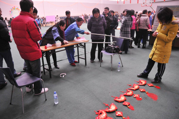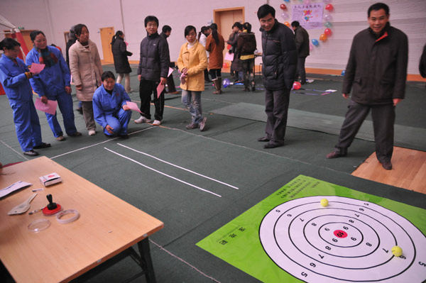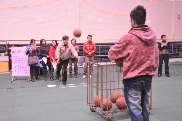 在2009年即將到來之際,中國計量學院天健體育館里大紅燈籠高掛,氣球、彩條五彩繽紛,喜氣洋洋,全校廣大教職員工,包括外來務工人員興高采烈的參加了由學校工會舉辦的“2009年迎新教工游藝活動”。   活動從12月30日的中午12點開始,一直持續到晚上7點。活動共設立了19個貼近生活,充滿趣味的游藝項目,有飛鏢、定點投籃、套圈、瞎子摸鼻、原地踏步、手中有數、吹蠟燭、快樂瓶口、點球、拋球入筐、雙龍奪珠、滾地靶、托球單腳跳、呼啦圈、頂氣球、撞彈珠、擊地投球、釣魚、記歌詞等等。開賽前,教職工們拿著飛鏢、籃球、乒乓球等,迫不及待地練習起來,場面好不熱鬧。活動中,教職工們個個勁頭十足,使出全身解數,吶喊聲、歡呼聲此起彼伏。大家都練得認真,比得投入,玩得盡興。參加游藝活動的教職員工個個喜笑顏開,其樂融融。場上不時傳來陣陣開心的笑聲和歡呼聲,充分展示了我校教職員工朝氣蓬勃、自信快樂的精神風貌。   學校黨委書記于永明、校長林建忠、黨委副書記徐涌金、副校長侯宇等學校領導親臨活動現場看望了前來參加活動的教職工,并饒有興趣地一起參與了游藝活動,大家在愉快活躍的氣氛中一起慶祝元旦和新年的到來!