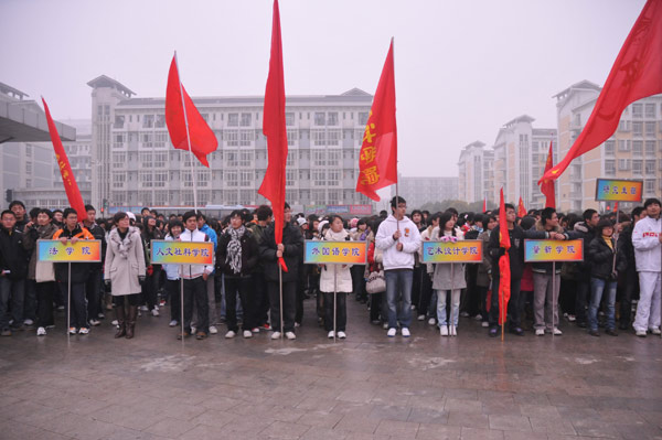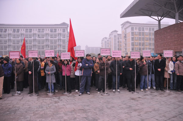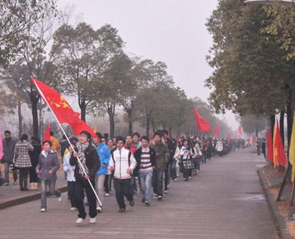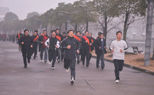 “你想變得健康嗎,你就跑步吧;你想變得聰明嗎,你就跑步吧;你想變得美麗嗎,你就跑步吧?!?月4日下午4:30,林建忠校長用奧林匹克的故鄉古希臘山上的巖石上刻的三句話,拉開了我校2009年師生新年環校跑的序幕。于永明、林建忠、陶偉華、侯宇、俞曉平等學校領導和3000余名師生一起,以環校跑這一特殊的方式迎接2009年的到來。   據悉,迎新年環校跑活動將作為我校師生迎接新年的保留活動,在每年元旦過后的第一個工作日下班前舉行,以增強師生的愛校榮校之情和健身強體意識。