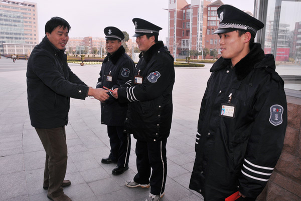 為了確保假期校園及留校學生的安全,使學生能過個開心年,保衛處、后勤服務公司等部門做了大量的工作,許多人員放棄了休息時間,堅守在工作崗位上。在這新春佳節即將到來之際,學校領導對堅守在崗位上的工作人員進行了慰問,并送上新春的祝福。