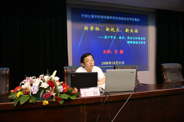 他首先就21世紀需要的七類人才進行了說明,一是跨領域的綜合型人才;二是理論與實踐相結合的創新型人才;三是基礎扎實+融會貫通型人才;四是學習型人才;五是積極、主動、樂觀型人才;六是溝通與合作型人才;七是智商 + 情商 + 靈商型人才。他對“研究生是什么”、“讀研究生為什么”和“怎么讀研究生”進行了分析,鼓勵大家要做“四好”研究生,一是學會做人:樹立正確的人生觀、事業觀、職業觀、學業觀,做一個誠信為先的好人;二是學會與人相處:表達能力絕不只是“口才”,它反映出你的自信和熱情;三是學會學習:通過研究來掌握知識,運用知識,在學習中摸索和完善適合自己的學習方法;四是學習知識:對專業知識的掌握,對科研工作能力的養成。針對研究生就業、職業和事業,他指出研究生在做規劃時一是要擇己所愛:調查表明興趣與成功機率有著明顯的正相關性;二是擇己所長:運用比較優勢原理充分分析別人與自己,選擇體現個人優勢的行業;三是擇世所需:要有長遠的戰略目光,分析、預測未來行業或者職業發展方向;四是擇己所利:職業是個人謀生的手段,目的在于追求個人幸福。他鼓勵我校研究生要認真對待今天,積極謀劃未來,相信自己,戰勝自己,開創屬于自己的天地。王穎教授此次講座的音像資料將于近日整理后發布供師生學習。