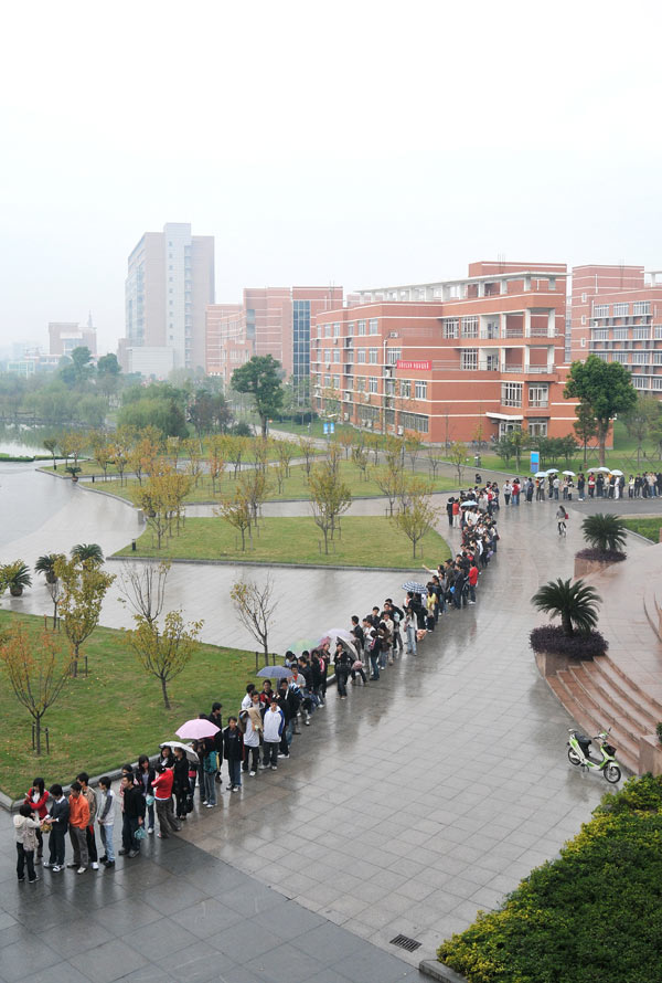 11月5日至6日,2009年全國碩士研究生考生信息確認工作在我校進行,這已經是我校連續第4年承擔了下沙點的研究生入學考試網上報名信息確認工作。   5日早上8點多,確認信息的考生隊伍已從啟明活動中心沿北斗路一直排到了至勤道。而第一位進行確認信息的考生,清晨5點半就等在確認現場門口了。不少考生認為學校和杭州市教育考試院的這一舉措極大地方便了下沙地區的考生進行信息確認,是關心學生,為學生提供服務的好做法。   根據網上報名的數據顯示,今年報考人數達16300余名,比去年增加了2000余人。此次,杭州市教育考試院共安排了20多位工作人員來我校為考生進行信息確認工作。為了確保此次考生信息確認工作安全有序,我校共派出了20位校衛人員,負責現場秩序的維護,協助發放《2009年全國碩士研究生報考信息確認考生須知》,并引導考生進行驗證繳費、電子攝像等工作,使確認現場忙而不亂。