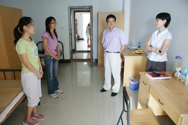 9月7日,校黨委副書記陶偉華在研究生部負責人陪同下來到研究生公寓看望我校2008級研究生新生,給新入學的研究生送去關懷。陶偉華詳細詢問了研究生的生活和學習情況,要求同學們相互關心、愛護,共同營造溫馨和諧的生活學習環境。他希望廣大研究生在兩年半的研究生求學期間,強化基礎理論學習,鍛煉實際動手能力,努力培養創新意識和創新能力,多出創新性成果,為學校爭光,為社會做貢獻。
