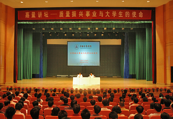 在迎來第七個世界計量日之際,5月21日下午2點30分,我校“嘉量講壇”在嘉量大會堂正式開講。國家質量檢驗檢疫總局原黨組副書記、副局長,全國政協委員,國家法制計量組織主席團理事會理事,中國計量測試協會理事長,中國計量學院名譽教授王秦平應邀作了“嘉量講壇”開講的第一場報告。學校黨政領導、全體中層干部、教師和學生代表1200余人聽取了報告。報告由黨委副書記徐涌金主持。   王秦平以“質量振興事業與大學生的使命”為題,從中國經濟發展的大趨勢,質量監督檢驗檢疫的重要性以及計量的特性,當代大學生的使命等三個方面,提出了很多具體的要求,談了自己的看法和人生感悟。他指出,當今世界政治正走向多極化,經濟全球化趨勢勢不可擋,科學技術飛速發展,全球文化正在不斷融合,世界的大趨勢是和平、發展、合作。中國改革開放30年來,也取得了很大的成績。在這樣的好的經濟形勢下,我們學校的前途和同學的命運都有著光明的未來,盛逢其時,大有可為。   王秦平指出,中國經濟最大的問題是產品質量一般化。計量是經濟、科學技術、工業化、世界化經濟的技術基礎。計量有法律性,廣泛的技術性,社會性和波及性等特性。標準、計量十分重要,無時不在,無處不有。因此,學校的“三立”理念非常正確,他希望中國計量學院的師生們高度重視計量,真正把學校辦出計量特色。   王秦平還對同學們提出了期望,他希望同學們要有個好身體,要培養自己好的德行,要學會和人相處,要學會生活,要有豁達的胸懷。   最后,他衷心地希望中國計量學院能成為中國一流的大學,希望中國計量學院的每一個學生都成為中國政治、經濟、文化建設的佼佼者。   王秦平的報告高瞻遠矚,深入淺出,風趣平實,贏得了在座師生的陣陣掌聲。   在報告開始之前,王秦平還在徐涌金副書記的陪同下參觀了校園,并受聘為我校的名譽教授。   據悉,為了豐富以“計量立校、標準立人、質量立業”辦學理念和“精思國計、細量民生”校訓為核心的量院精神和量院文化的內涵,強化質量監督檢驗檢疫相關學科專業特色和培養具有牢固質量觀念、明確質量意識、較強計量能力的質量振興事業高素質人才的人才培養特色,學校從今年開始設立“嘉量講壇”,今后將陸續請到各領域的專家、學者來我校開壇講座,以深化我校學生科學精神和人文精神培養,以及科學素質與人文素質的教育。