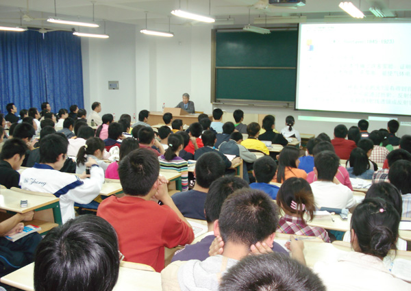 首先,金尚忠院長(zhǎng)介紹我院目前情況、發(fā)展前景,以及學(xué)科在國(guó)際上的研究進(jìn)展和相關(guān)技術(shù)的應(yīng)用。隨后,陳星旦院士從X射線的形成、發(fā)展歷程以及長(zhǎng)春光機(jī)所在此方面研究作了詳細(xì)的講述,陳院士的講座深入淺出,教室座無虛席,師生們受益非淺。