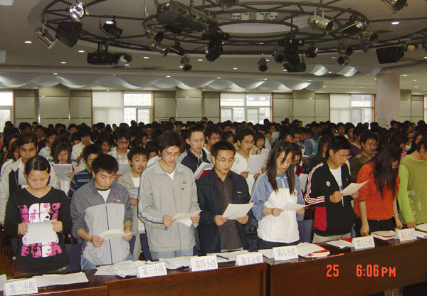4月25日晚,在莊嚴肅穆的國際歌聲中,校黨校第三期預備黨員培訓班開學典禮在啟明活動中心多功能廳隆重舉行開班典禮。黨委副書記、紀委書記于永明出席了開學典禮,典禮由黨委組織部部長郝敬習主持。培訓班班主任、各二級學院組織員和去年下半年發(fā)展入黨的528名預備黨員參加了開學典禮。   于永明在開學典禮上作重要講話。他指出,近幾年來,所有高校都高度重視大學生黨員發(fā)展工作,高度重視學生黨員的教育和培訓,這是黨的事業(yè)的需要,是社會主義建設的需要。中央提出,要把優(yōu)秀分子吸引到黨的隊伍中來,把黨員培養(yǎng)成優(yōu)秀的人才,把黨員人才培養(yǎng)成國家建設的骨干力量。組織上入黨是一個程序,而思想上入黨是一輩子的事,有很長的路要走。學習提升、思想教育不是一個短暫的過程,是一個長期的過程,是伴隨我們一生的過程。預備黨員到正式黨員,這個預備期間內(nèi),要提升我們思想水平和理論水平,要加大培訓與交流,進行一些理論的學習和實踐的活動,進行一些黨員的交流和討論,黨員的身份、角色要不斷的通過各種各樣的活動和載體來強化。舉辦培訓班的也是為了大家提供了一種渠道、一種載體、一種形式,怎么樣提高自己的思想素質(zhì),從思想上解決入黨的問題,需要大家在學習工作中間不斷地強化,不斷地提升自己。中國計量學院的發(fā)展離不開廣大學生地理解和在學校建設中的貢獻,離不開學生黨員在其中所起的作用。在去年的教學評估過程中,我們學生黨組織和學生黨員發(fā)揮了非常好的先鋒模范帶頭作用,使得我們的教師、我們的干部深受感動。期望廣大黨員在學習、生活、工作過程中,不斷發(fā)揮出黨員的示范作用,為中國計量學院更好更快地發(fā)展作出我們應有的貢獻。   黨委組織部部長郝敬習說,為了提高預備黨員整體素質(zhì),使預備黨員更好地度過預備期,早日成為一名光榮的中共正式黨員,我們每年舉行兩次預備黨員培訓班。本次培訓班緊緊圍繞學校評估整改年、成果培育年和作風建設年的工作要求,緊密結(jié)合學員的思想實際,通過對《黨章》、黨的十六屆六中全會精神等黨的基本知識、基本理論和基本政策的深入學習,進一步端正預備黨員的入黨動機,提高預備黨員的思想政治素質(zhì),增強黨員意識和責任感,發(fā)揮他們在各項學生工作中的先鋒模范作用,使其能以黨員標準嚴格要求自己,爭做“合格共產(chǎn)黨員”。培訓班以自學為主,安排了4個專題講座,結(jié)合觀看電化教學、主題實踐、交流研討、撰寫論文等多種形式進行。學員的成績由平時成績、調(diào)研論文和結(jié)業(yè)考試三部分組成。培訓班將根據(jù)每位學員的表現(xiàn)和小組的學習情況,評選出優(yōu)秀學員和優(yōu)秀學習組。   培訓班班主任、黨委組織部王勤和培訓班班長、信息工程學院學員康巖龍同學分別在開學典禮上發(fā)言。他們表示,今年是學校評估整改年、成果培育年、作風建設年,要按照黨校的安排認真做好培訓班的組織、管理工作,帶領(lǐng)全體學員努力學習,勤于思考,順利完成培訓任務,爭做一名合格的黨員。   培訓班開學典禮結(jié)束后,校黨委副書記于永明作了第一講《科學發(fā)展觀與加強自主創(chuàng)新》,并播放了電教片《大國崛起》。