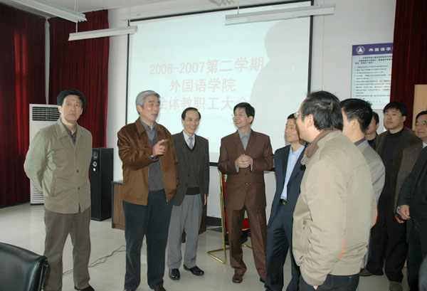今天是3月3日,是新學期教職工上班的第一天,氣溫回升,校園里一副春意盎然的景象。上午9點,姚盛德、林建忠、于永明、徐涌金、張碩年、侯宇、蔣家新、馮時林等學校領導以及黨委委員、黨校辦主任陶偉華一行來到計量技術工程學院、信息工程學院、機電工程學院、管理學院、理學院、法學院、生命科學學院、人文社科學院、外國語學院、體軍部、成教學院等教學單位,向教職員工們進行了新春慰問。學校領導對大家的工作給予了充分肯定,向各教學單位的教職工表示新年的問候,并對新學期的工作提出了要求和希望。