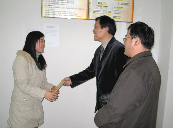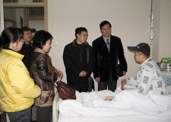 帶著省教育工會對廣大困難職工的真心關愛,1月16上午,浙江省教育工會辦公室朱乃行主任,專程看望慰問了我校困難教職工。校工會主席金國雄、管理學院分工會主席劉洋、機關總支書記楊立軍和分工會主席賈岳嵩、現代教育中心主任王德林等參加了慰問活動。   1月16日上午一早,朱乃行主任在校工會主席金國雄、管理學院分工會主席劉洋的陪同下,首先前往浙一醫院看望了正在住院治療的孫建明副教授,朱主任詳細詢問了他的健康狀況,勉勵他在黨和政府以及工會組織的關心下,戰勝疾病,早日康復,重新走上工作崗位,并代表浙江省教育工會送上了慰問金。隨后又驅車來到下沙,在校機關總支書記楊立軍和分工會主席賈岳嵩、現代教育中心主任王德林等陪同下,前往現代教育中心校網受理處看望慰問了單達琪老師,并代表浙江省教育工會送上了慰問金。朱乃行主任每到一處,都噓寒問暖,鼓勵他們要自強不息,相信在各級組織和工會的幫助下,家庭解困一定是有希望的。   1月17日上午,校工會主席金國雄又專程前往杭州第七人民醫院看望慰問了鄒建民老師,在親切交談的過程中,詢問了他的身體健康情況,鼓勵他要保持樂觀的情緒,希望他早日恢復健康。   在省教育工會領導的重視下,我校2006年省級幫扶對象的人數較2005年增加了一倍。我校的困難救助實行了省教育工會、校工會、二級學院分工會逐級配套援助的辦法,救助金額發放也較2005年有了明顯增加。