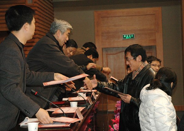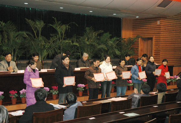 會議首先舉行了隆重的頒獎儀式。校長林建忠、黨委副書記徐涌金、副校長侯宇、蔣家新、馮時林分別宣讀了一系列表彰決定。會議隆重表彰了2006年度我校在科研、教學、思政、保衛等各項工作中獲得各級各類榮譽和獎項的先進集體及先進個人。
